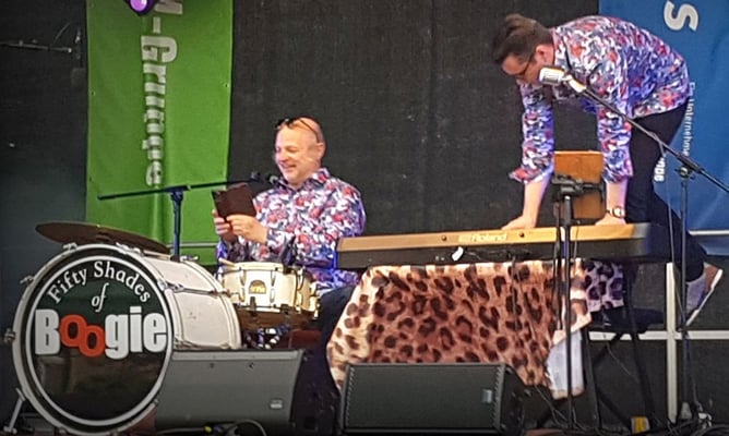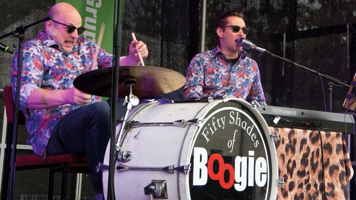 Die 2 flotten Hechte nehmen das Publikum mit Piano und Minimal-Schlagzeug mit auf eine Reise zu den Wurzeln der heutigen Rockmusik: fetziger Boogie, erdiger Blues und viel guter alter Rock´n´Roll der 50er und 60er Jahre á la Jerry Lee Lewis & Chuck Berry.