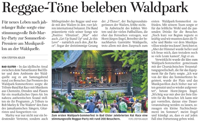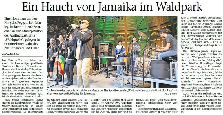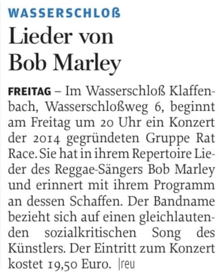 Mit Gesang, Hammond-Orgel, Gitarre, Bass, und Schlagzeug präsentiert sich RAT RACE im authentischen Sounddesign der frühen Wailers Produktionen mit Lee Scratch Perry. Abgerundet durch den markanten dreistimmigen Harmoniegesang der 'I-Threes', den legendären Backgroundsängerinnen der Wailers, verspricht RAT RACE sowohl ein umfassendes kulturelles, wie auch musikalisches Erlebnis.